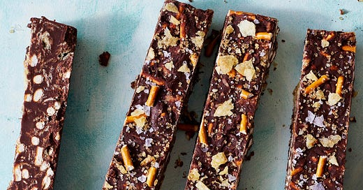 Easy-peasy, salty-sweet chocolate fudge with pretzels and chips