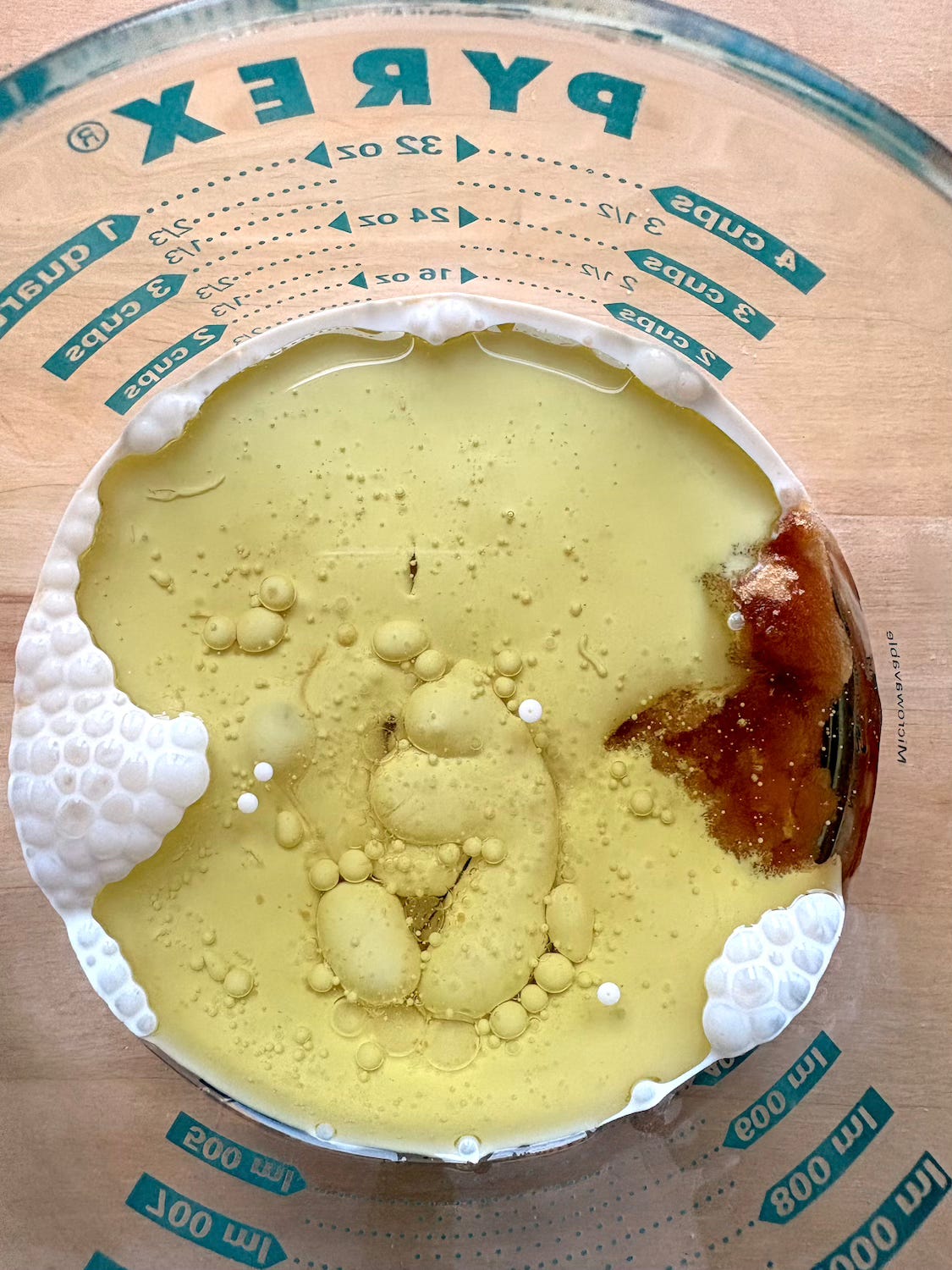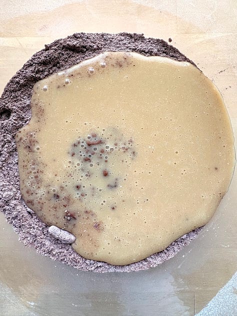 Place the remaining ingredients in a large bowl and whisk together to combine. Pour the liquid ingredients into the dry ingredients and stir with a whisk just until a smooth cake batter is formed. If using rye flour, it is doubly important not to over whisk the batter; rye flour can become gummy if mixed for too long.