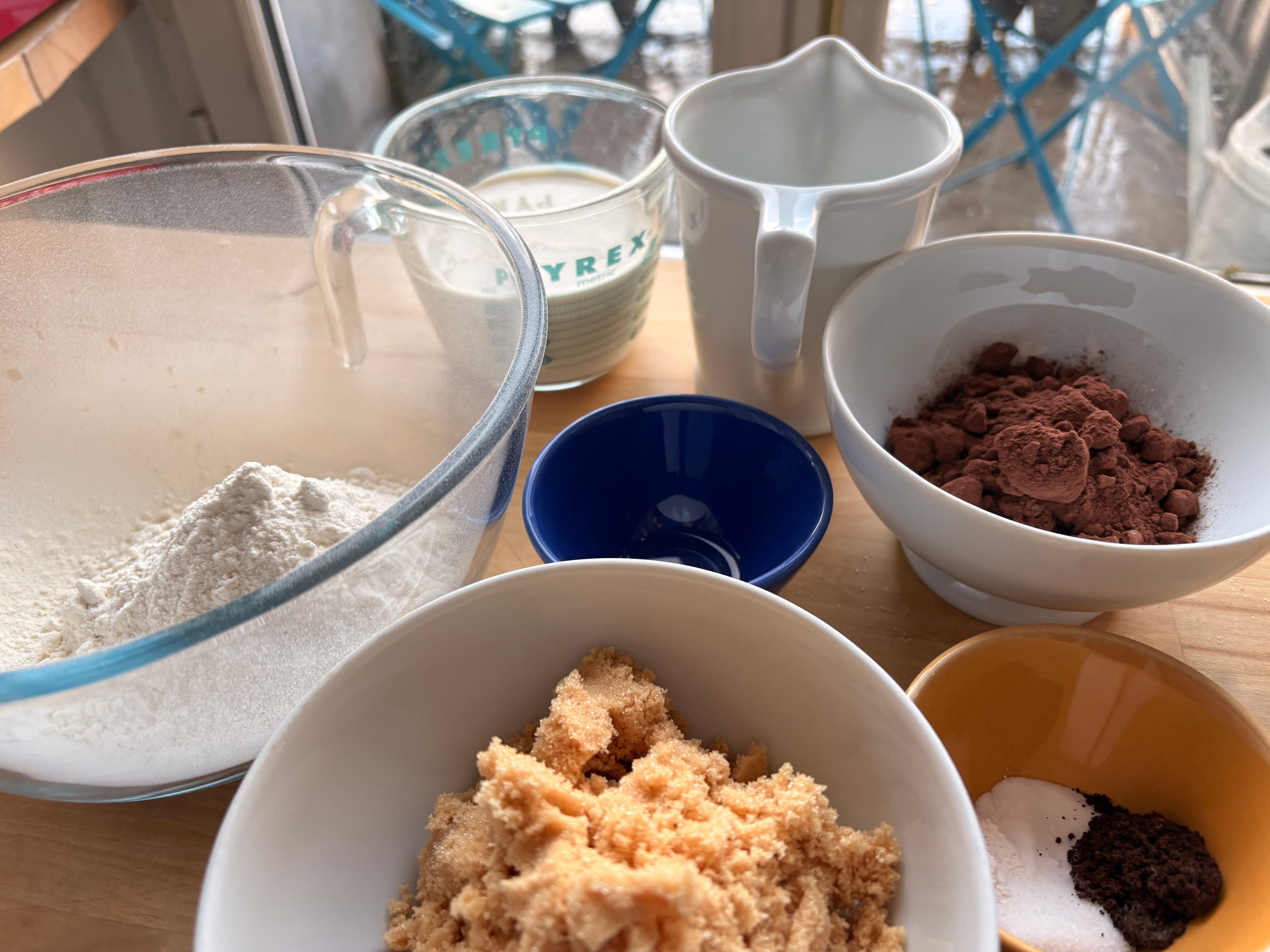 The cocoa: It should be Dutch-processed and it should be less lumpy than mine. I pushed mine through a strainer before I whisked it into the dry ingredients.