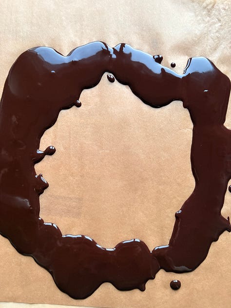 The ganache: It’s a marvel! Your ganache will thicken faster if you follow Edd’s advice and bring the water just to a simmer, rather than a boil.