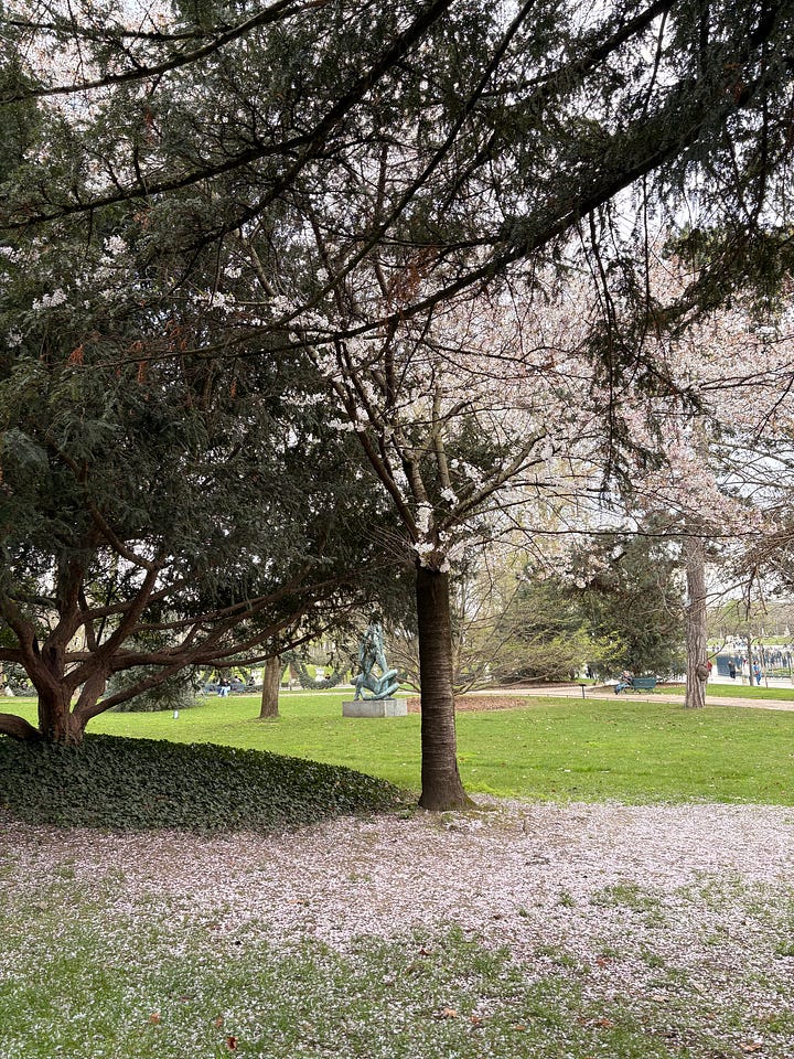 This is it — it’s almost fly-away time for me. Time to return to Connecticut. Time, if I’m lucky, to see spring unfold. Again. I saw the start of plum blossoms in Tokyo. Magnolias in Paris. And, with luck, there’ll be that near-illusory tinge of green haloing the willows out my kitchen window. And forsythia.
