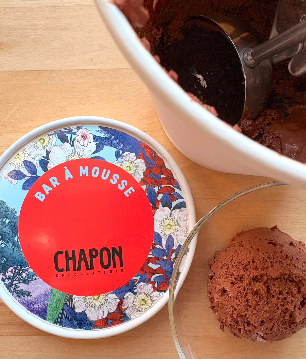 I was delighted to discover that Chapon’s shopping bag includes a recipe for chocolate mousse. Of course, it was impossible for me not to make it — it was great! Annotated recipe coming soon.